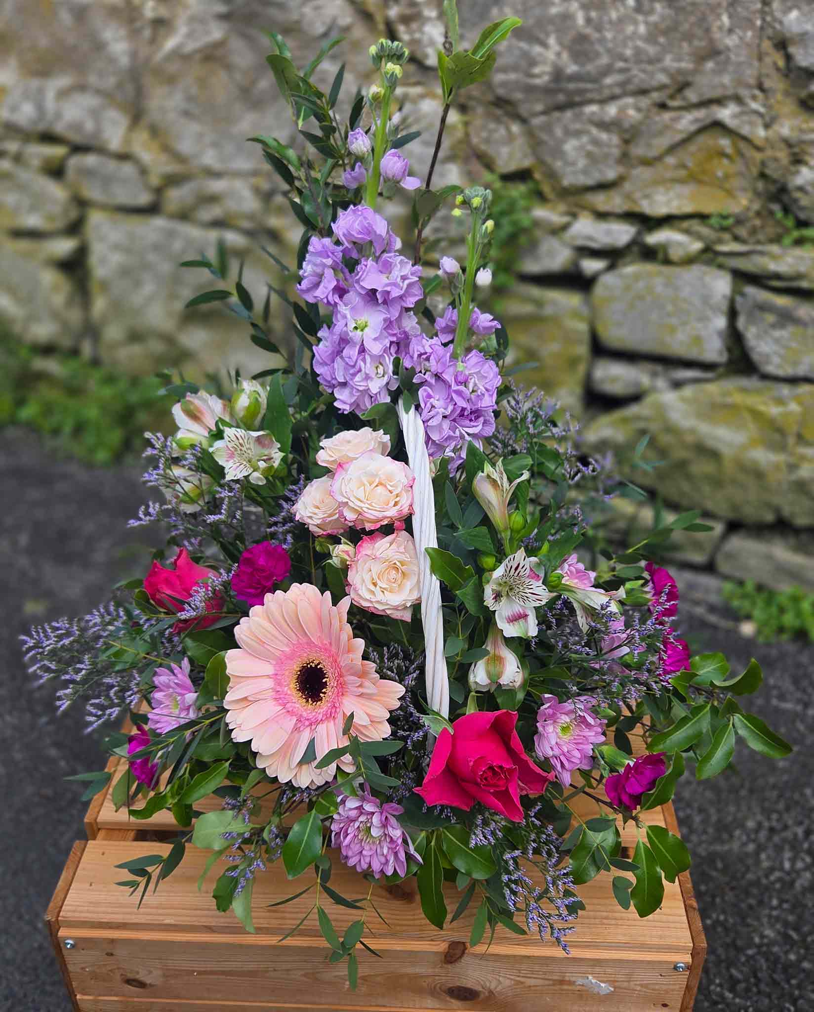 A traditional upright basket arrangement for your loved one this Mother’s Day.
